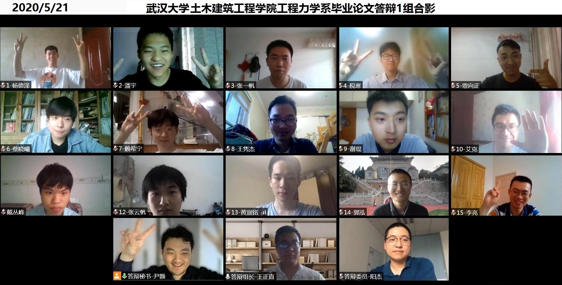 此次土建院2020届本科毕业生线上视频答辩工作严格按照往年线下答辩的流程和要求进行,尽力保证了答辩效果和质量。在答辩过程中,有专人负责记录和保存每一位毕业生答辩的影像资料,答辩结束后,邀请小组答辩学生和答辩委员一起进行了“云”合影,与学生答辩影像资料一并送给每一位答辩学生,作为疫情特殊之年的毕业纪念。由于准备工作充分,各个小组答辩工作开展井然有序,公平公正。