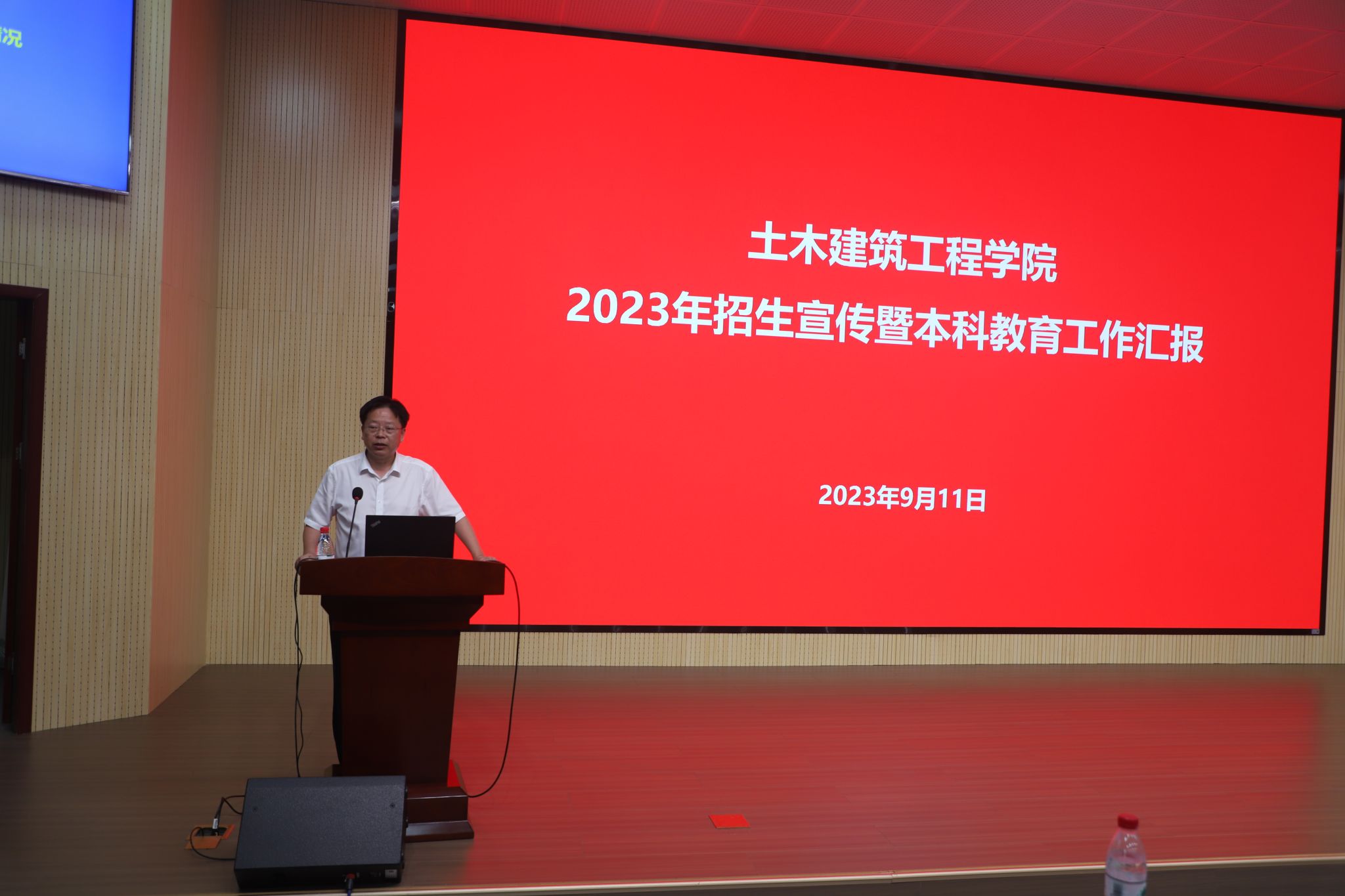 党委书记杨旭通报了学院学习贯彻习近平新时代中国特色社会主义思想主题教育专题民主生活会召开情况,并作了“2023年招生宣传暨本科生教育工作情况”的报告。他向全体教职工介绍了学院2023年江西招生工作的优秀成绩,表示学院将继续高度重视、加大投入,争取明年招生工作取得更大进步。杨书记号召大家紧紧围绕学院中心工作,团结协作、求实创新,落实立德树人的根本任务,释放“三全育人”动能,共同推动一流人才培养。