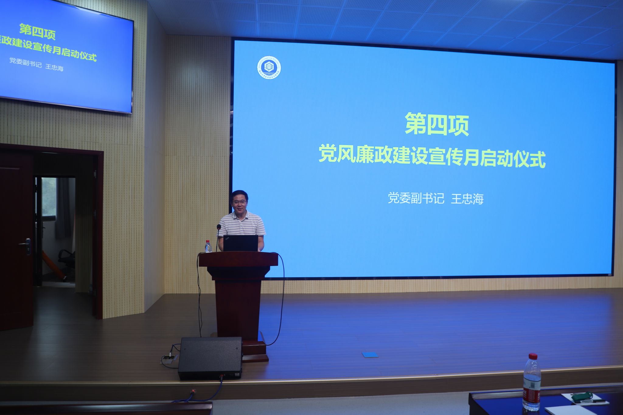党委副书记王忠海传达了学校开展2023年党风廉政建设宣传教育月活动相关精神,通报了教育部公开曝光的违反教师职业行为十项准则的典型案例,要求全体教职工高度重视党风廉政和师德师风建设,知准则、守底线,以身作则、为人师表,用实际行动达到“经师”和“人师”的高度统一。