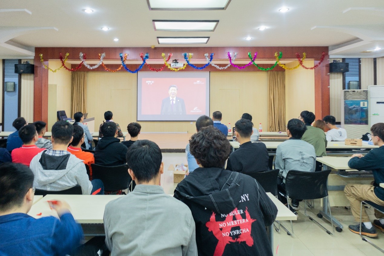 伴随着《红旗飘飘》的歌声,一幅巨大的五星红旗图案铺满体育场,随即又变换组合成“中国”字样;随后,第七届世界军人运动会会徽“和平友谊纽带”被点亮,和平鸽图案出现在场地中央。同学们被精美的灯光和音效所震撼,给予阵阵掌声。当看到王治郅举着中国国旗带领中国代表团入场时,同学们十分激动,掌声、欢呼声此起彼伏。在升国旗、奏国歌的时候,全体同学自发起立,目视屏幕中的国旗,同唱国歌。21时许,习近平主席宣布:“第七届世界军人运动会开幕!”会议室里的气氛达到高潮,掌声雷动,欢呼不断。